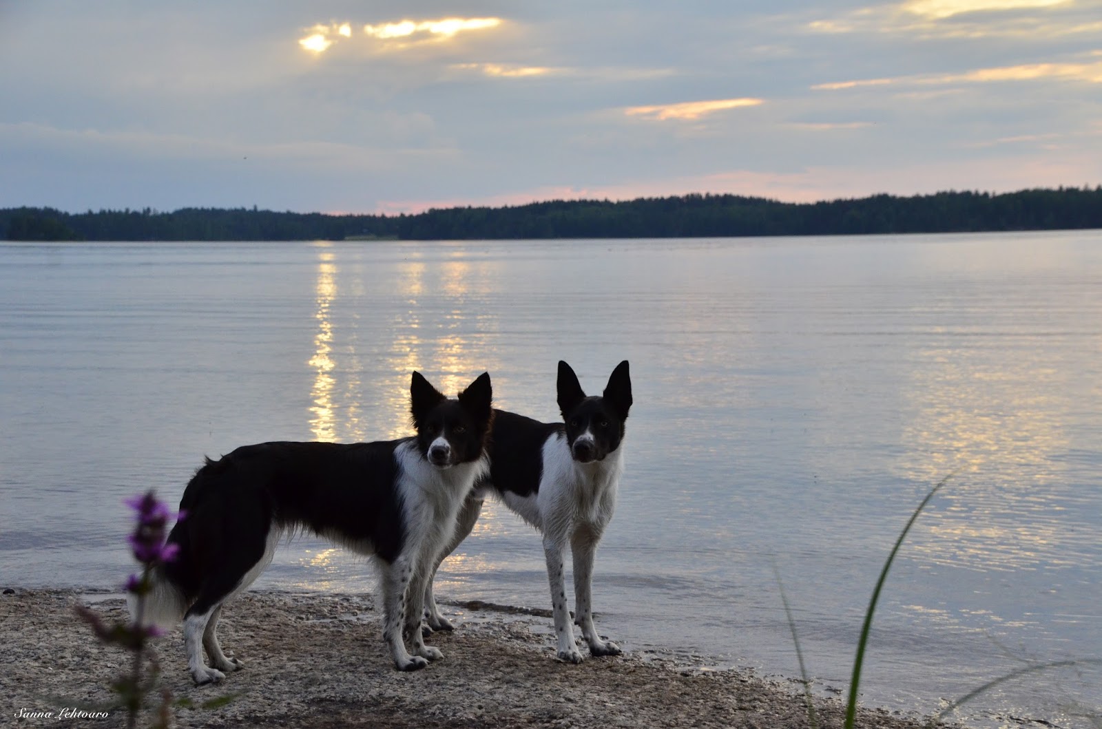 Oltiin mökillä käymässä ja Puhdin ja Katen ensimmäinen venematkakin meni hienosti. Mökillä koirat nautti vapaudesta ja ne leikki,juoksi, ui, leikki, juoksi ja ui jne.. aikalailla kokoajan :D